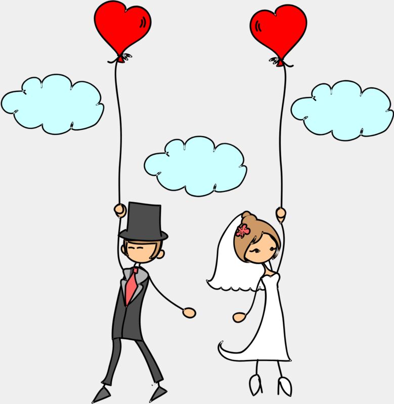 Cartoon Wedding Groom Bride Heart Balloons 1