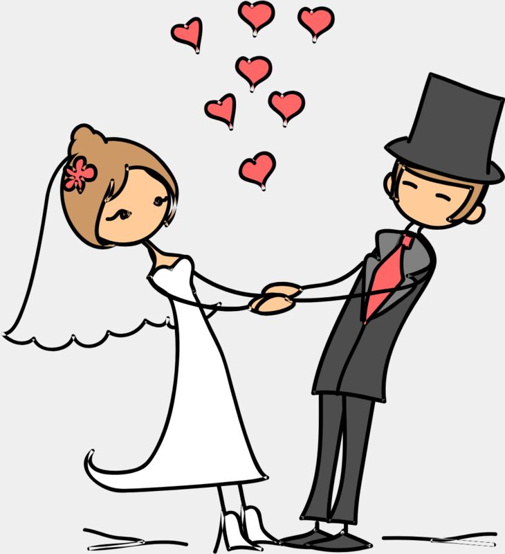 Cartoon Wedding Groom Bride Holding Hands 13