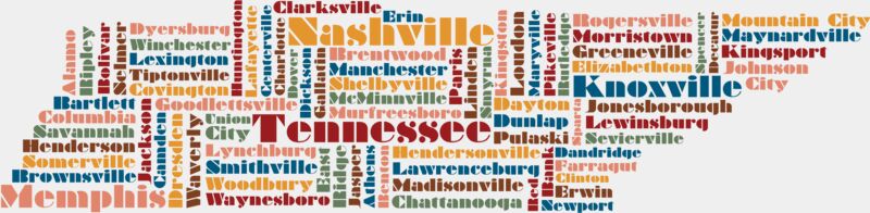 Tennessee City Names Outline Silhouette 1